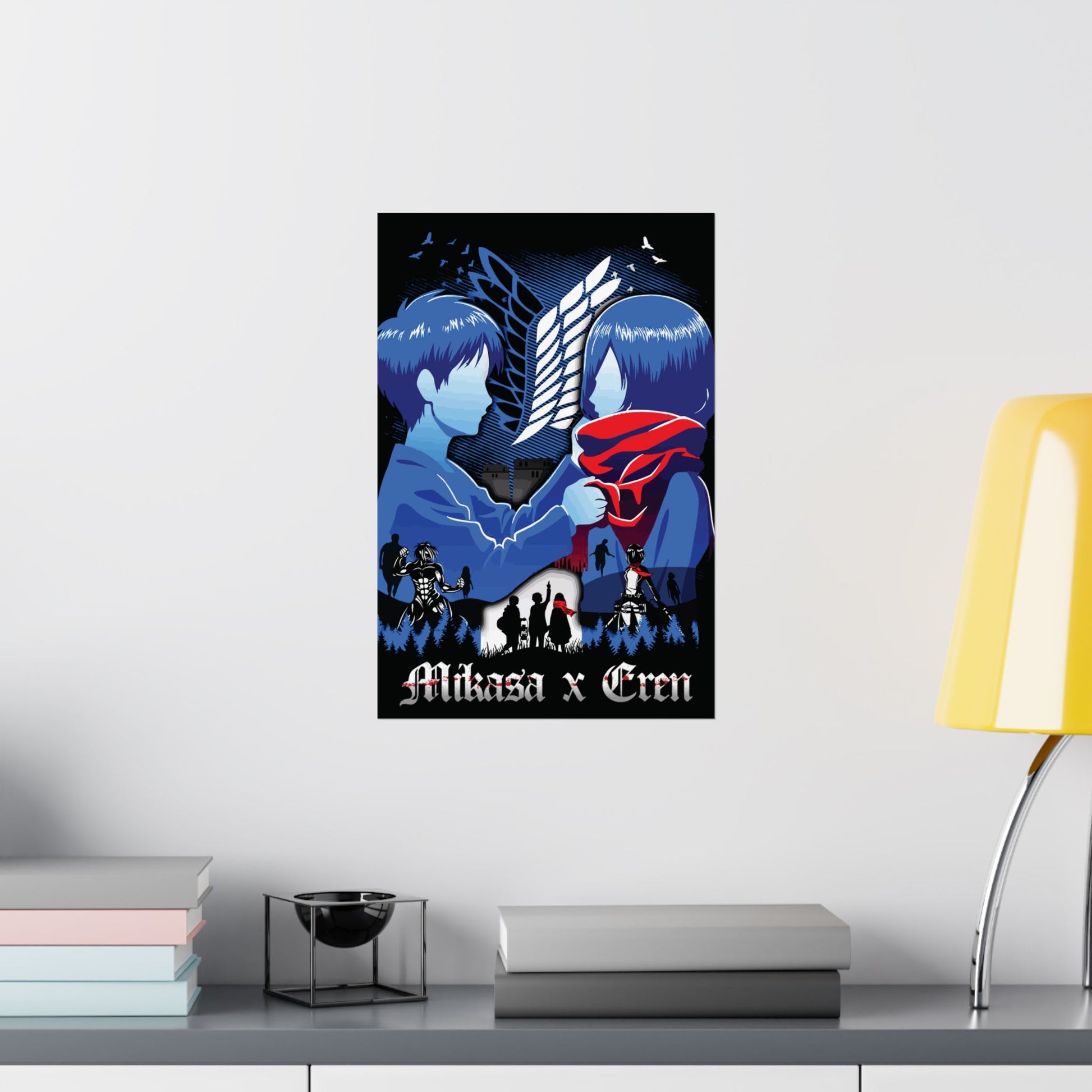 Mikasa x Eren Matte Vertical Poster | Attack on Titan Anime Wall Art